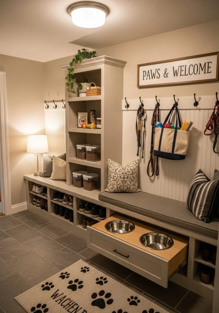Pet-Friendly Entryway with Built-In Pet Station and Hooks
