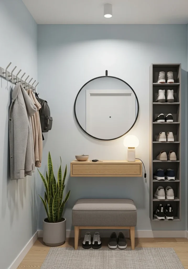 Integrating hidden storage, foldable seating, or modular units can further enhance efficiency. With thoughtful design, even the smallest entryway can make a strong first impression — blending convenience, comfort, and contemporary charm.