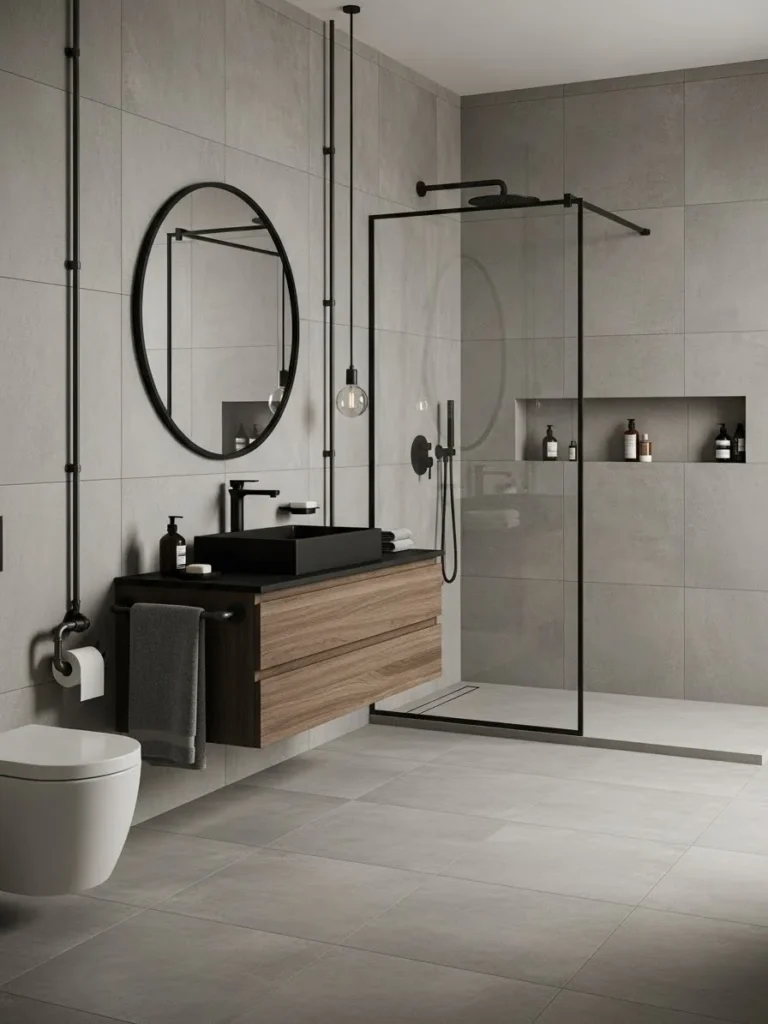 Concrete-look tiles provide the perfect blend of character and practicality. Their non-porous surfaces make them suitable for wet areas, while their contemporary appeal remains timeless. Ideal for floors, walls, and shower interiors, these tiles bring a bold yet elegant industrial touch to any bathroom.