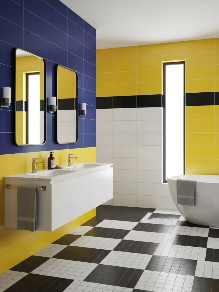 Color blocking techniques can be applied through geometric layouts, split-wall designs, or contrasting feature zones such as shower enclosures and vanity backdrops. The interplay of light and dark tones adds depth and enhances spatial definition. When balanced with minimalist fixtures or neutral accessories, the result is both eye-catching and elegant.