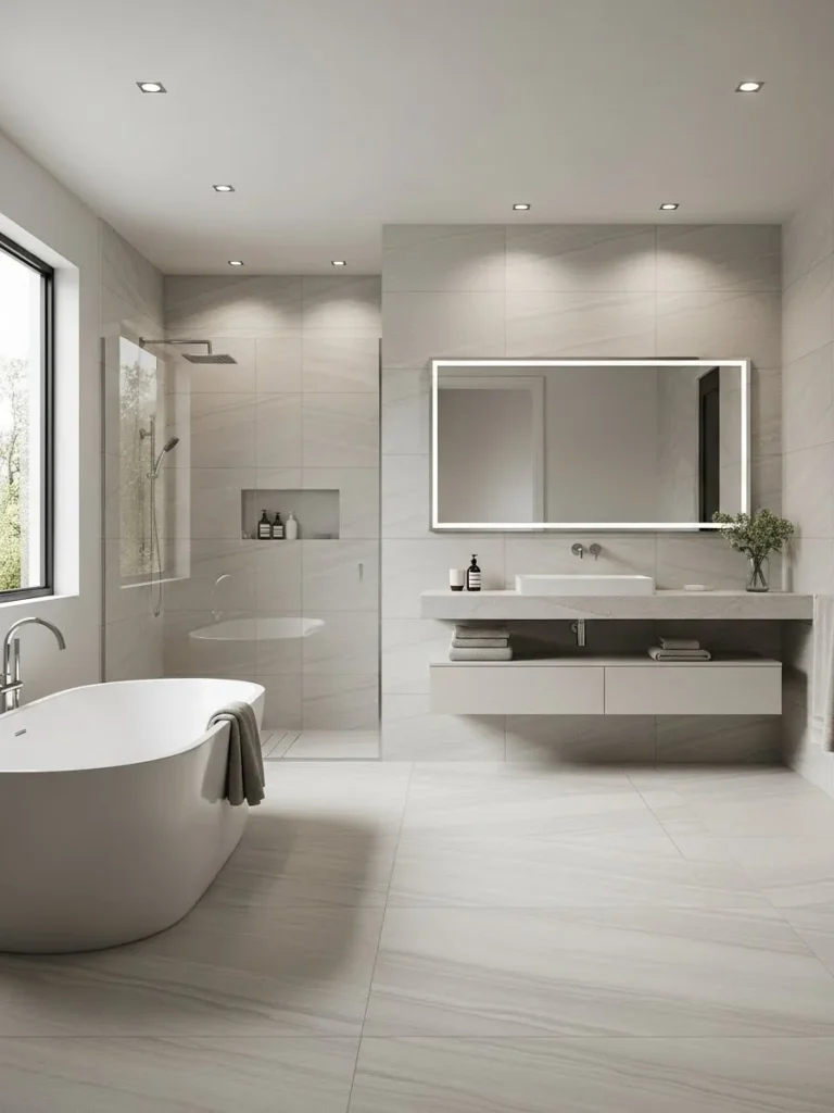 Beyond aesthetics, large-format tiles offer practical benefits, including easier cleaning and increased durability. Their smooth surfaces reduce grout maintenance, making them ideal for busy households. This combination of beauty, performance, and elegance makes large-format tiles a leading choice for modern bathrooms seeking a truly luxurious experience.