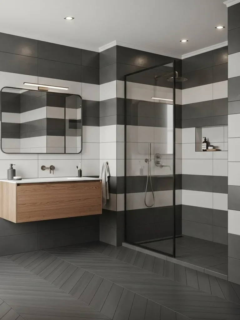 High-contrast tile designs are gaining traction for their ability to make a dramatic visual impact through bold color blocking. By pairing striking colors—such as deep charcoal with bright white, navy with gold, or emerald with soft beige—designers create bathrooms that feel energetic, modern, and architecturally expressive. This approach transforms tiles into artistic elements rather than simple functional surfaces.