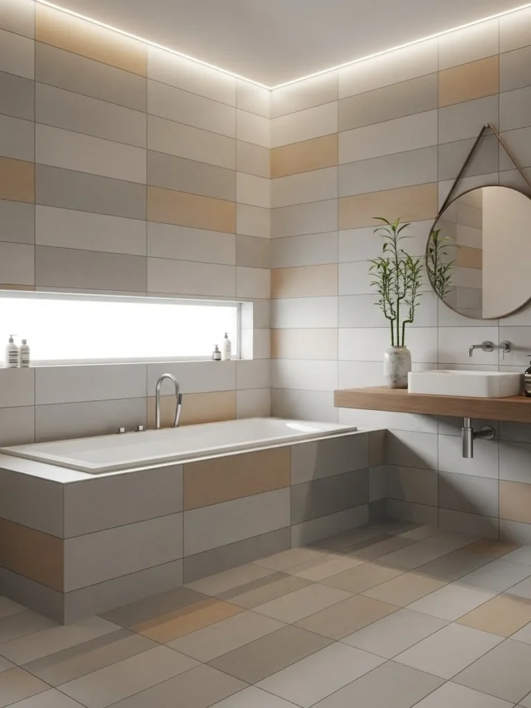 10. Warm neutral bathroom tile palettes for cozy aesthetics