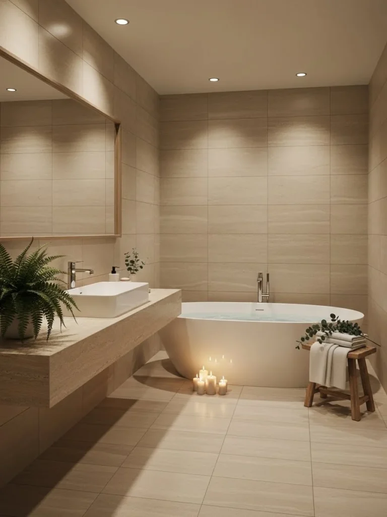 In modern homes, beige bathroom tiles provide a timeless and welcoming foundation. They complement minimalist layouts, organic accents, and subtle luxury details. The result is a calming retreat that feels warm, elegant, and effortlessly serene—ideal for creating a personal spa experience at home.