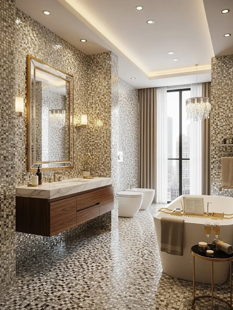 35. Sparkling mosaic bathroom tiles for glamorous interiors