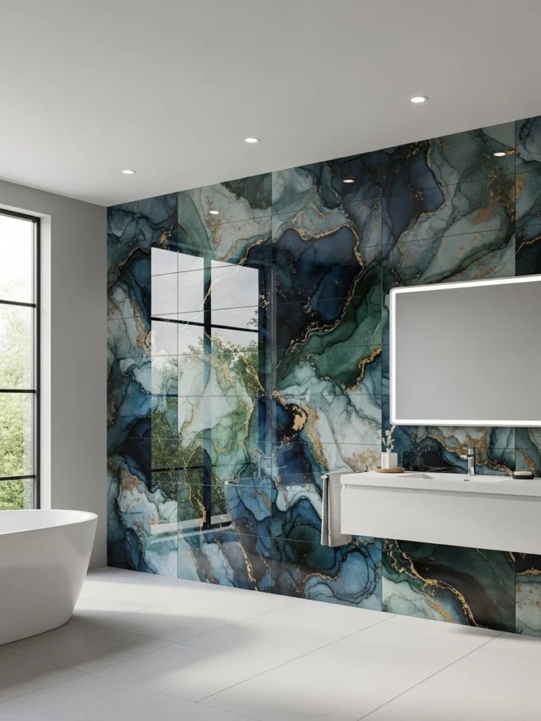 The appeal of statement walls lies in their versatility and long-term impact. Whether showcasing modern abstract patterns or traditional motifs, they allow homeowners to create a memorable and luxurious atmosphere. This design approach adds depth, individuality, and artistic flair, bringing a unique identity to contemporary bathroom interiors.