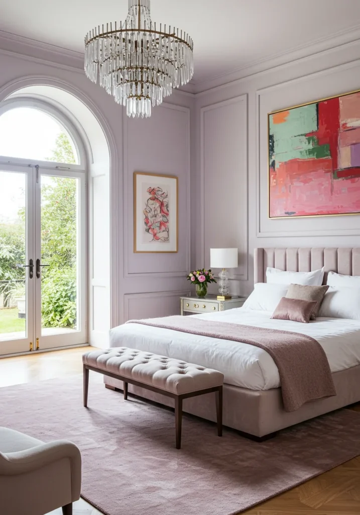 Luxury Bedroom with Statement Art and Soft Pastel Hues