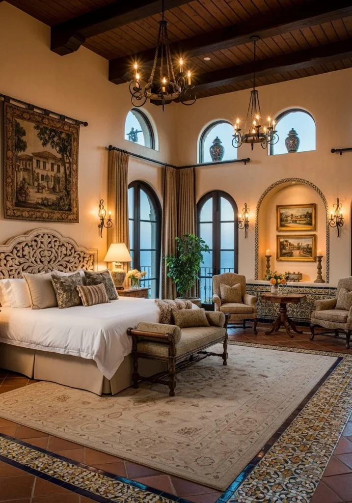 Mediterranean Luxury Master Suite with Archways and Tile Décor
