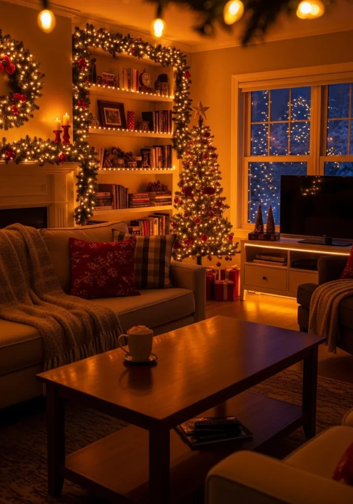 23. LED lighting Christmas decor ideas for living room cozy lighting setups