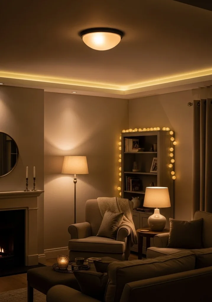 Soft ambient lighting ideas for a cozy living room atmosphere