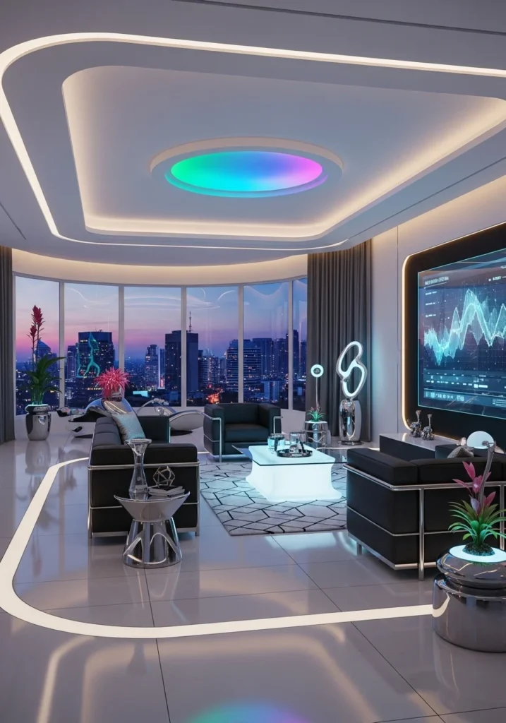 27. Futuristic Rich Living Room with Smart Lighting