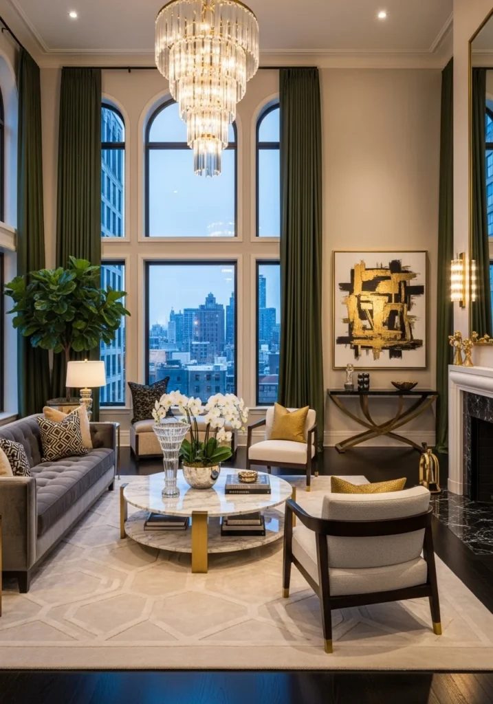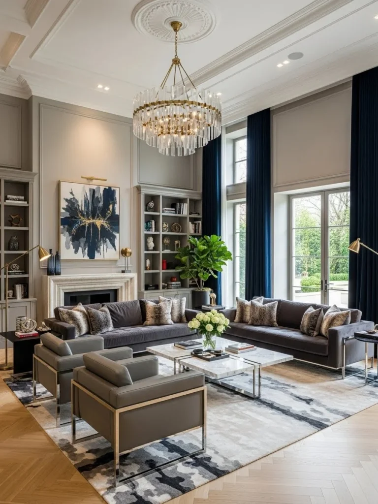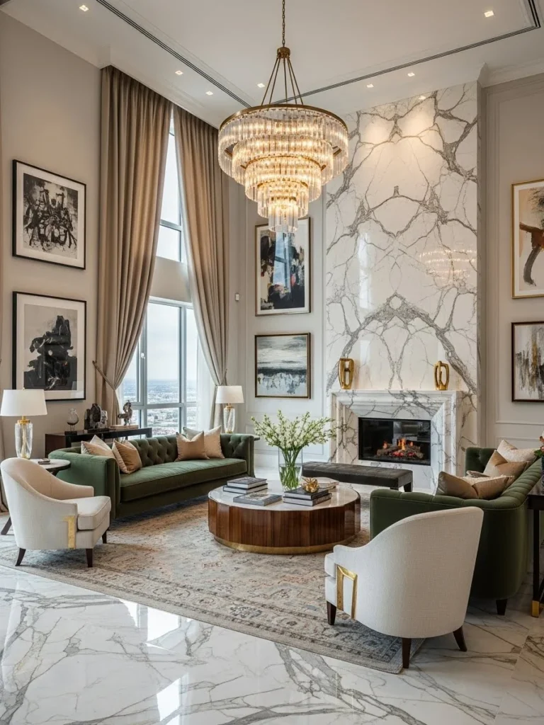 Elite Interiors: 35 Rich Living Room Concepts for Ultra-Luxury Living presents a curated exploration of refined elegance, architectural excellence, and contemporary sophistication. This collection highlights living room designs that embody wealth through thoughtful composition, premium materials, and meticulous attention to detail. From grand chandeliers and marble finishes to bespoke furniture and harmonious color palettes, each concept reflects a balance between visual impact and timeless luxury. These interiors are designed not only to impress but to communicate status, comfort, and exclusivity in a seamless and understated manner.