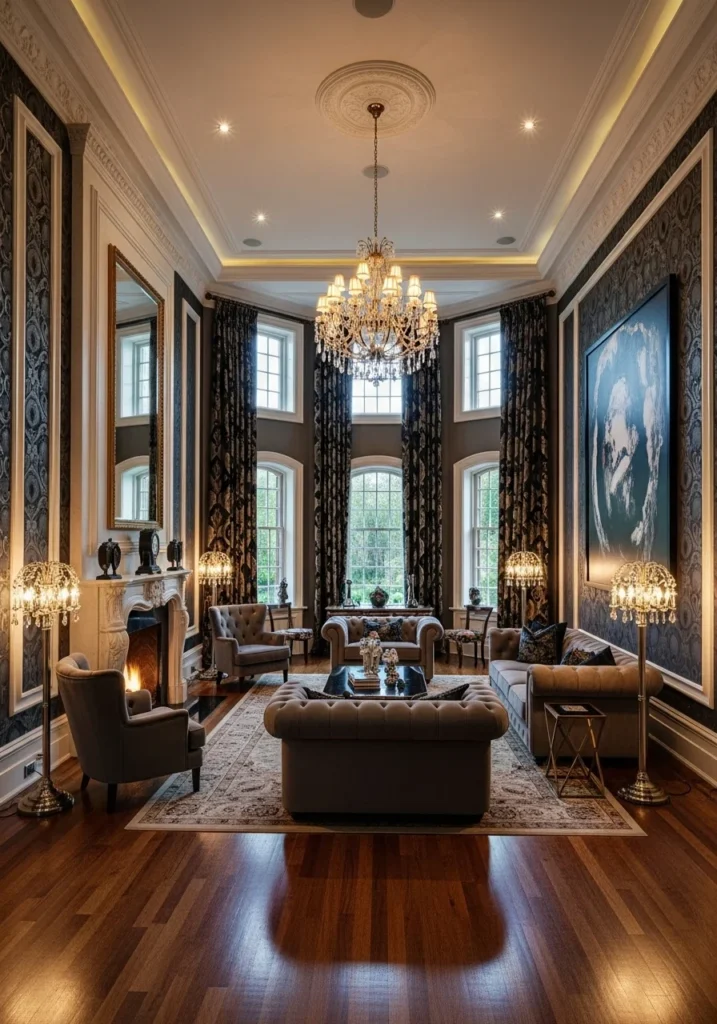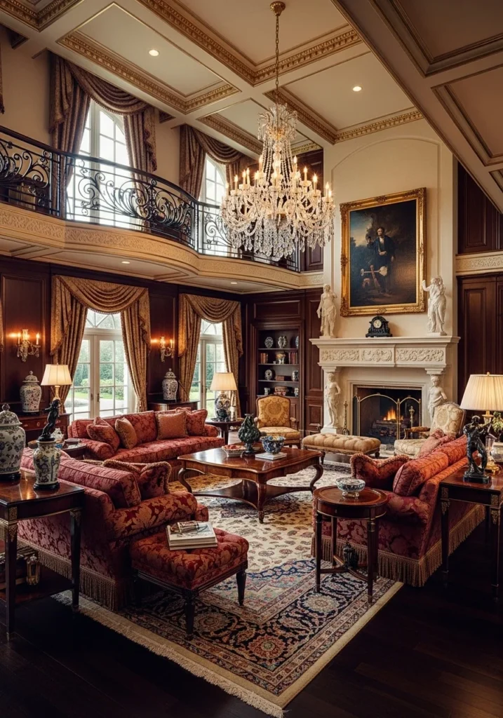 12. Mansion-Style Rich Living Room with Double-Height Ceiling