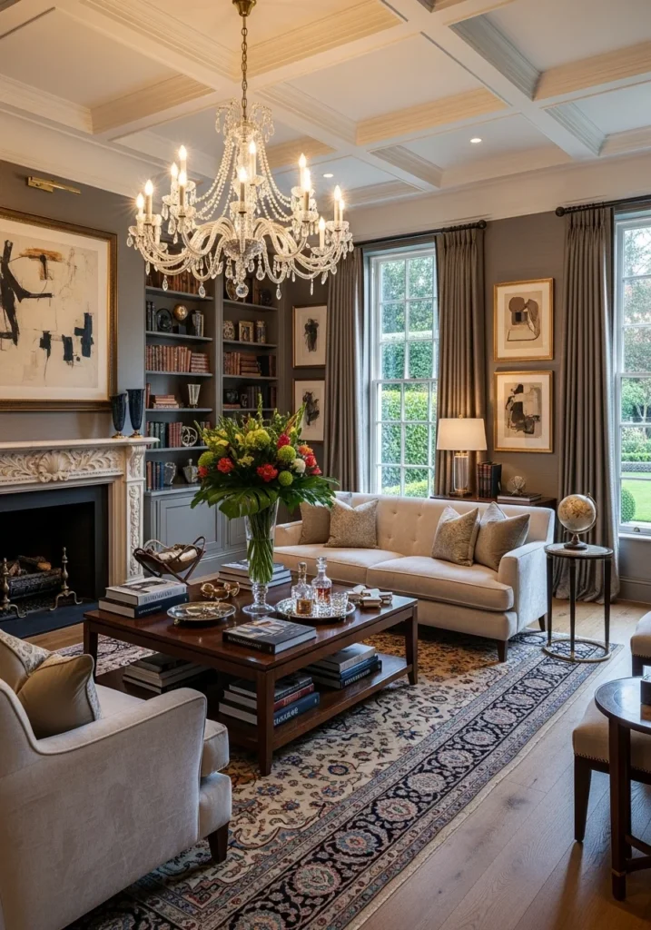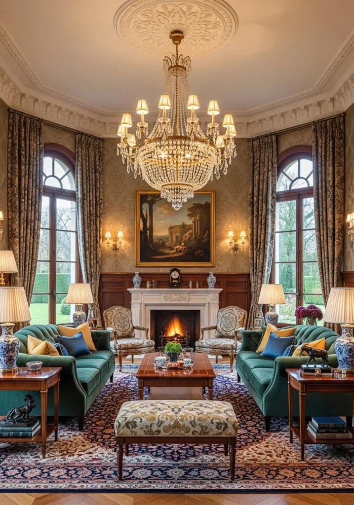 03. Classic Rich Living Room with Crystal Chandelier