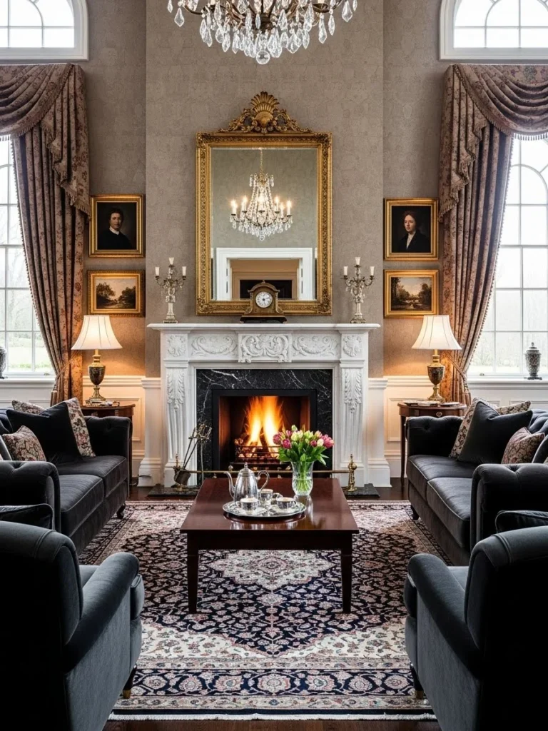Ideal for luxury estates and heritage-inspired residences, this living room embodies a stately atmosphere that transcends trends. It appeals to those who value tradition, artistry, and enduring beauty. The space stands as a celebration of classic luxury living, blending history with refined comfort.