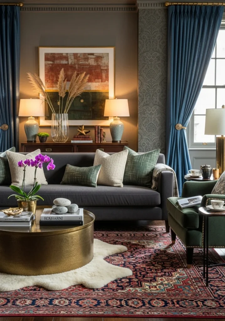 17. Rich Living Room Styled for Luxury Real Estate Showcase
