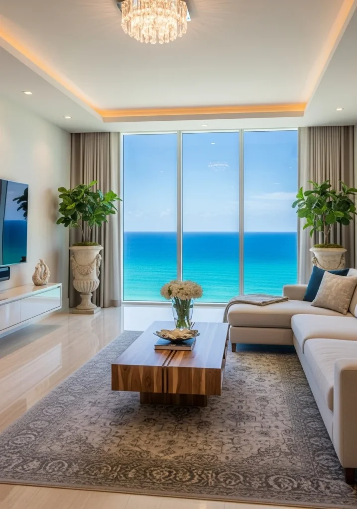 Perfect for design inspiration boards and luxury home showcases, this living room embodies modern elegance with broad visual appeal. It reflects a curated lifestyle where comfort, beauty, and refined taste coexist effortlessly.